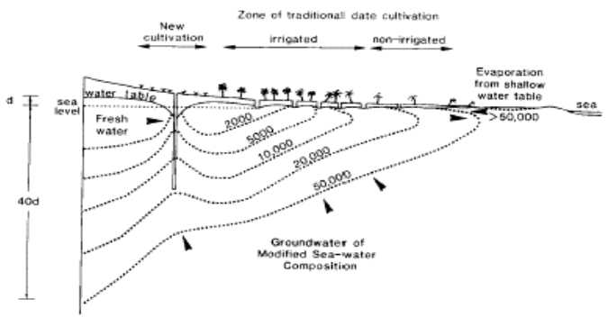 of the Batinah coastal area to illustrate seawater intrusion, showing